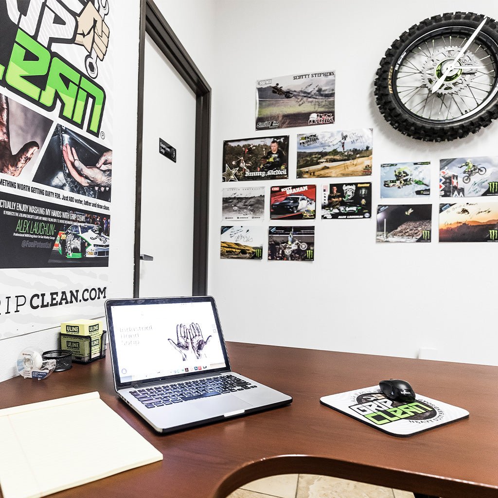 Grip Clean was born in the dirt and mud of the motocross circuit. Looking for a hand cleaner that would break down grease and oil without damaging his skin, 5-star X Games medalist Bryce Hudson made the first batch of Grip Clean in a kitchen crockpot, using bentonite clay and other all-natural ingredients. Today, our mainstay recipe remains largely unchanged, though we’ve scaled up our production to high-capacity equipment (what we call “really, really big crockpots”) to meet the demand of techs across the nation. We remain proudly family owned and made in America.